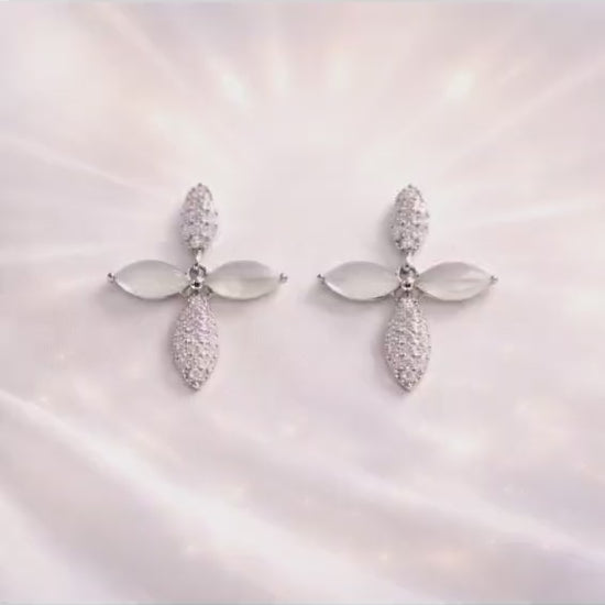 Premium 925 sterling silver cross hanging earrings. Designed with sparkling cubic zirconia and marquise stones, these lightweight earrings are perfect for party wear, festive occasions, or daily elegance.